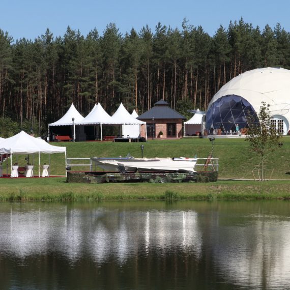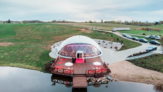 The “VIP Dome” project in Liutonys, Lithuania, is a distinctive and exclusive space designed for events, conferences, and other special occasions. The dome itself covers an area of 254 square meters, complemented by a VIP loft space of 100 square meters. Nestled in the picturesque Degučiai Valley, this modern structure is built using cutting-edge technology, offering a sense of luxury and elegance.