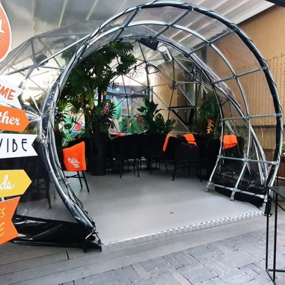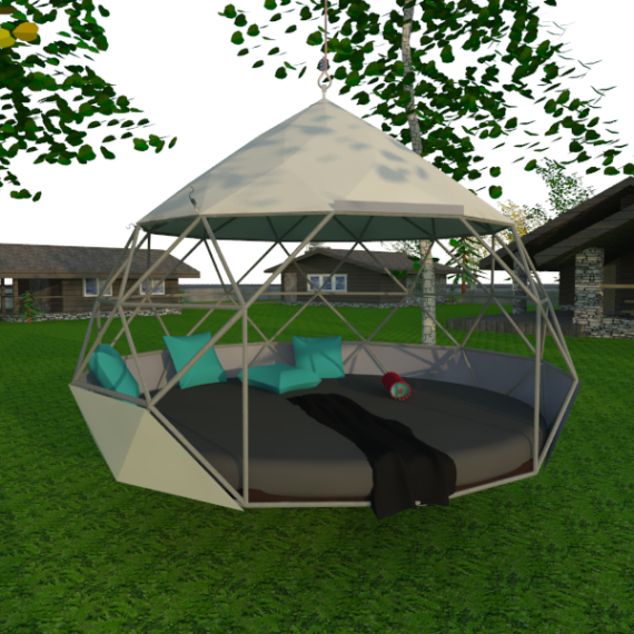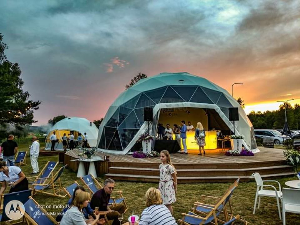 Pro kupolo langą galima stebėti saulėlydžius. Kupolas pritaikytas oro temperatūrai nuo -30 iki +80 laipsnių Celsijaus nes turi THERMIC.PRO terminę membraną. Šio sezono pristatymas, 8 metrų skersmens 50 m2 ploto kupolas – “GLAMPING DOME”.
