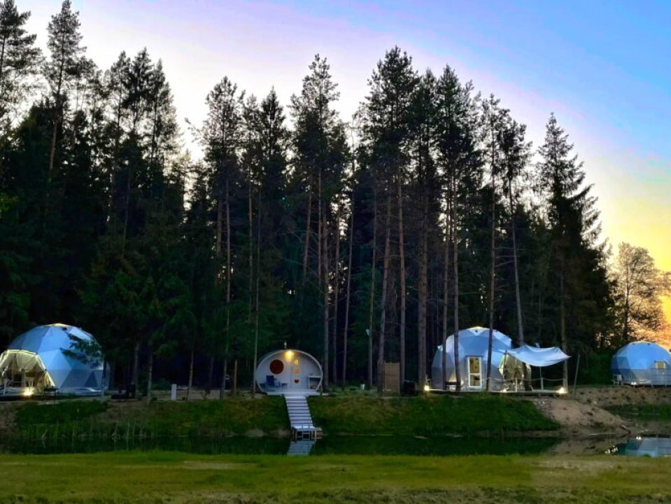 Prie ežero, giliai miško glūdumoje, slypi ypatinga erdvė, kurioje laikas tarsi sustoja, o pasaulis tampa tik tylos ir ramybės atspindžiu. Šioje privati sodyboje, tarp švelniai siūbuojančių medžių šakų ir krištolinių ežero bangų, stovi du sakraliniai kupolai, kuriuose telpa visa visatos išmintis ir senovės ritualų paslaptys.