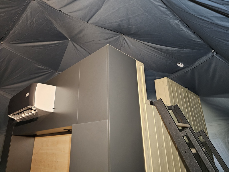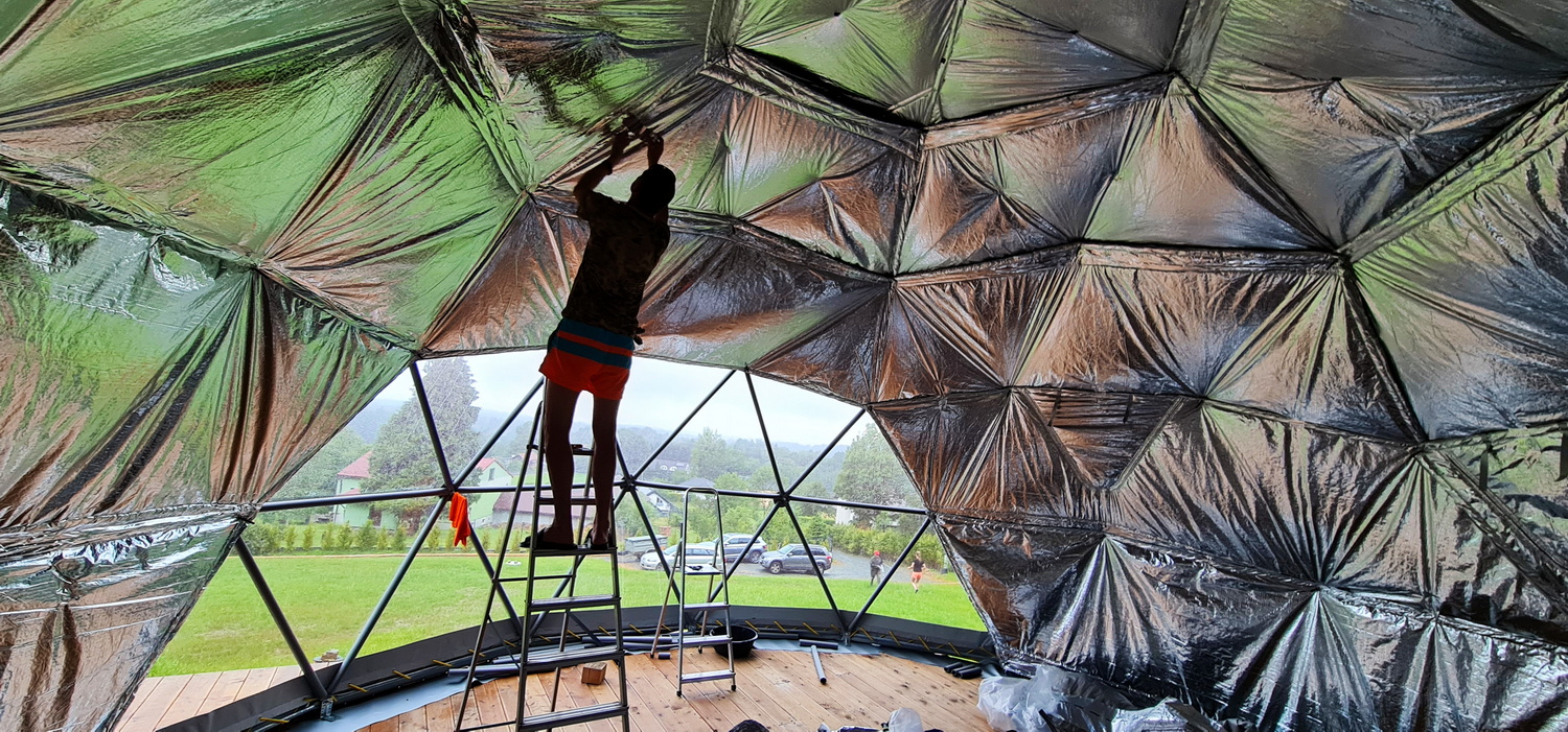 Pro kupolo langą galima stebėti saulėlydžius. Kupolas pritaikytas oro temperatūrai nuo -30 iki +80 laipsnių Celsijaus nes turi THERMIC.PRO terminę membraną. Šio sezono pristatymas, 8 metrų skersmens 50 m2 ploto kupolas – “GLAMPING DOME”.