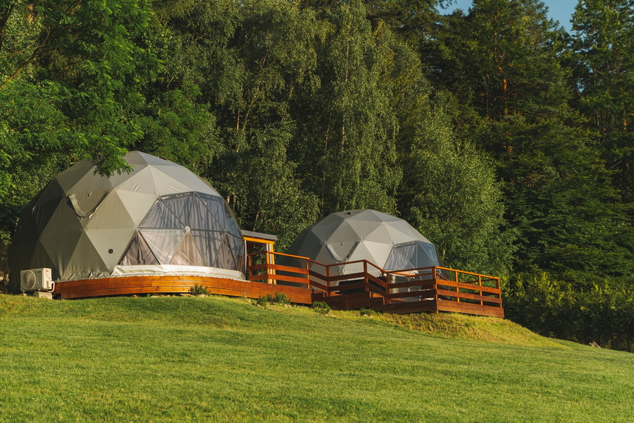 GEODOMAS pristato naują produktą – mažo formato glamping kupolai, skirti 1-3 šeimoms. Šie kupolai greitai pastatomi bet kokiame grunte ir vietovėje naudojant sraigtinius inkarus. Pritaikyti naudoti esant temperatūrų diapazonui nuo -20°C iki +50°C, jie užtikrina komfortą ir saugumą tiek šaltuoju, tiek šiltuoju sezonu.