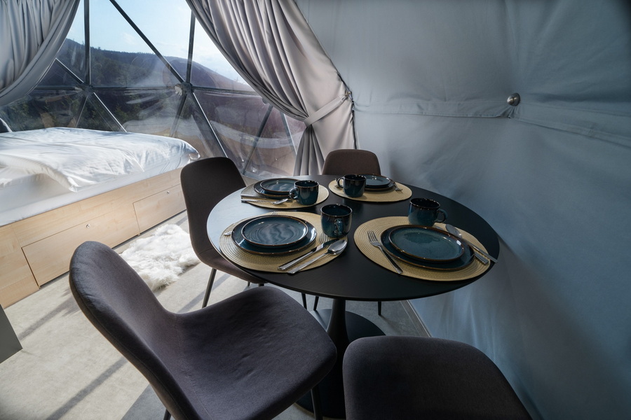 Mūsų kupolai suprojektuoti siekiant užtikrinti maksimalią komforto, privatumo ir estetikos dermę. Šiuolaikiškas, permatomas dizainas leidžia mėgautis panoraminiais kalnų vaizdais tiesiai iš lovos – tarsi gyvenant gamtos paveiksle. Kupoluose rasite visus patogumus: nuo patogių lovų, vonios kambarių ir virtuvėlės iki oro kondicionavimo, elektra ir šildymo sistemų, kurios užtikrina jaukumą visus metus.