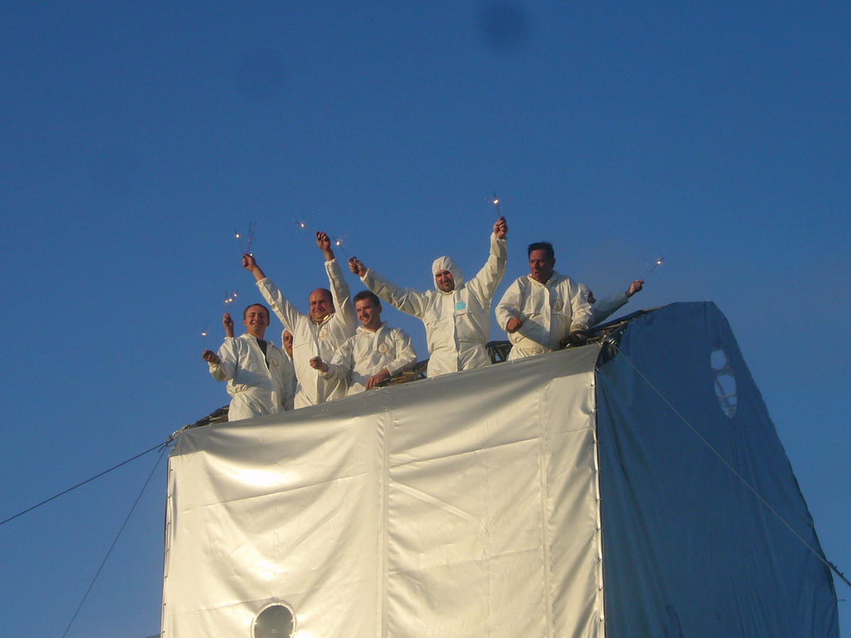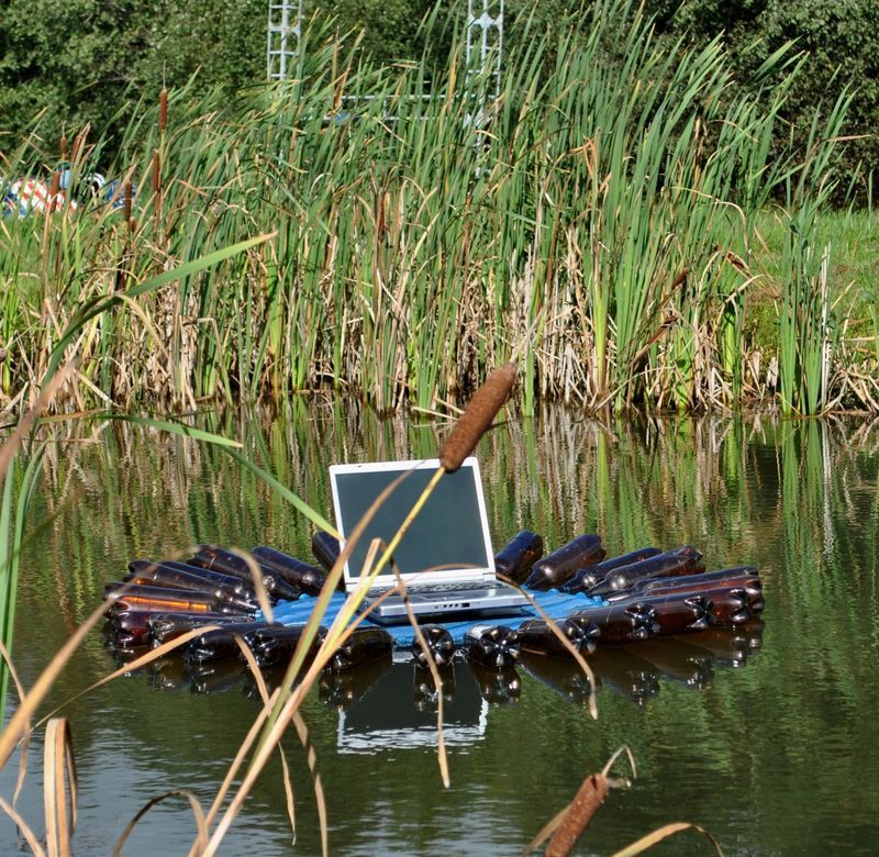 Even with the little weight of the mobile construction the float was perfectly stable. The floats are one welded unit containing the load bearing frame made up of Aluminium G-sections reaching all the way round as well as the actual floats.