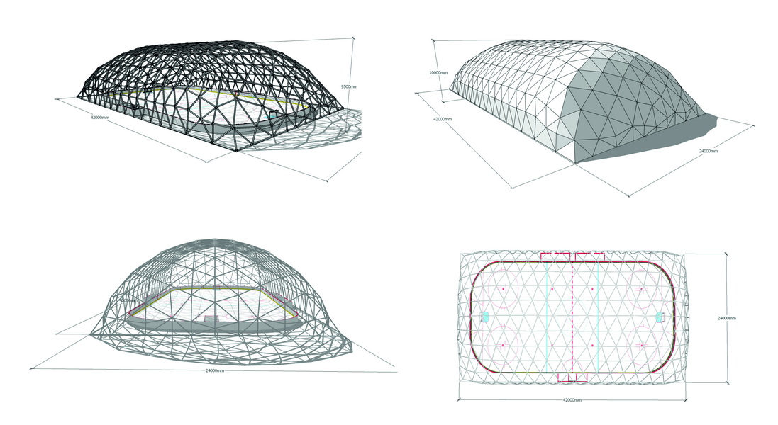🌐 Modelis: Glamping kupolas sporto čiuožyklai