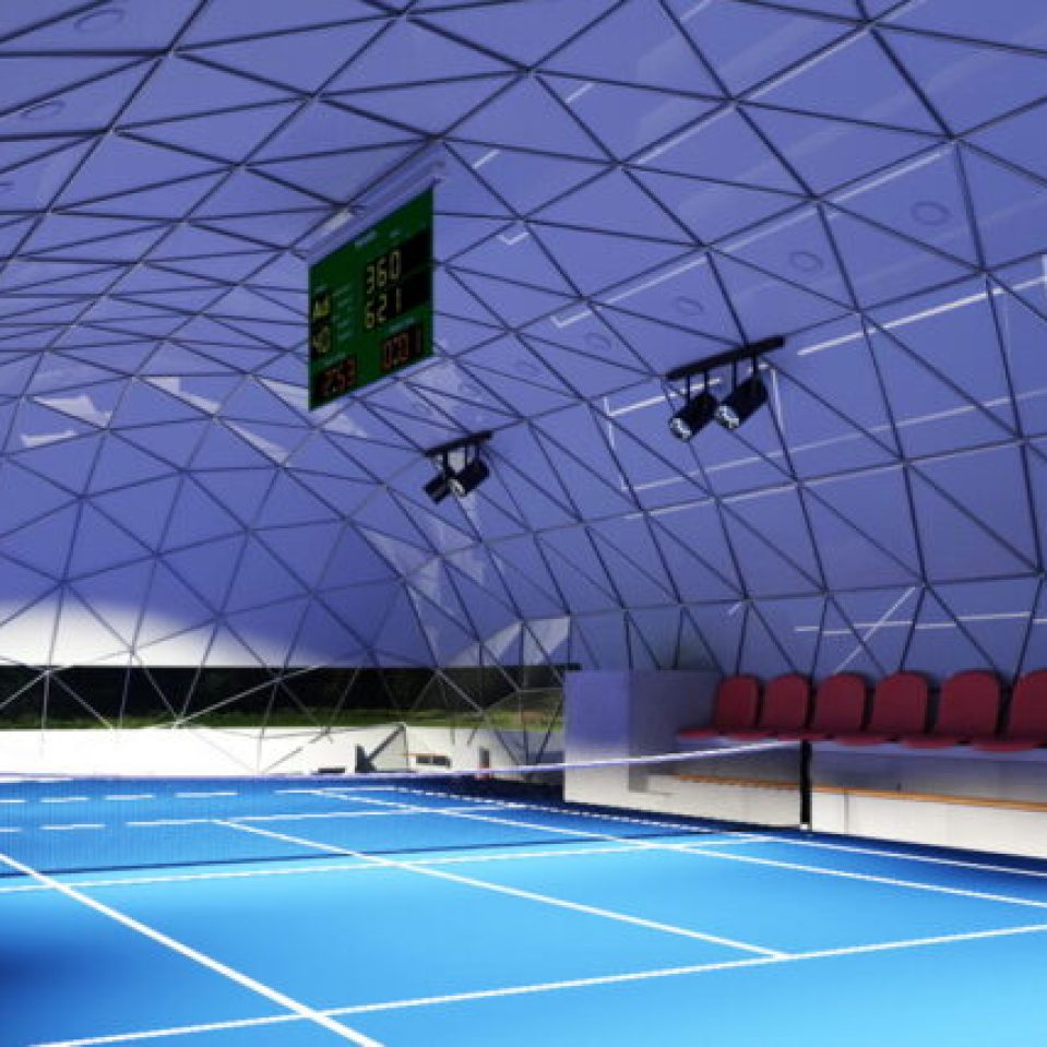 Kupolų technologijos suteikia puikią galimybę sukurti tvirtas ir ilgaamžes struktūras, kurios idealiai tinka įvairių tipų sporto aikštelėms dengti. Vienas iš tokių pavyzdžių – Qvadrat Dome tipo stogai, skirti teniso kortams uždengti. Šie kupolai yra pagaminti iš metalinių strypų konstrukcijos, sujungtos be suvirinimo, o tai leidžia greitai ir efektyviai surinkti ir išardyti struktūrą be papildomų pagalbinių priemonių. Stogo fasado ir vidaus apdailai sunaudojama 30 proc. mažiau medžiagų. Statant 200 m2 įprastą stačiakampį pastatą, reikia apdailinti apie 380 m2 paviršiaus: sienos sudaro apie 280 m2, o apie 140 m2 sudaro stogas. Kupolas turi tik 250 m2 paviršiaus. Toks pastatas sutaupo Jums iki 30 proc. šildymo, vėdinimo, kondicionavimo išlaidų.