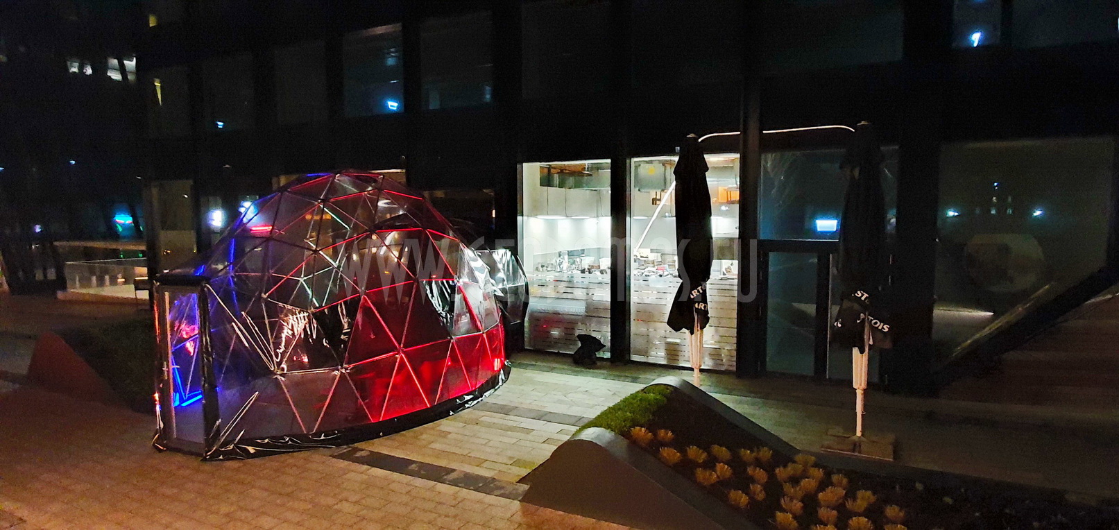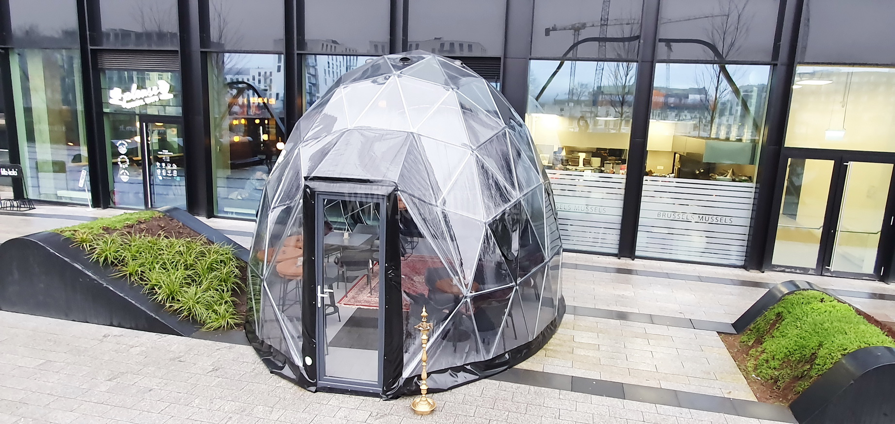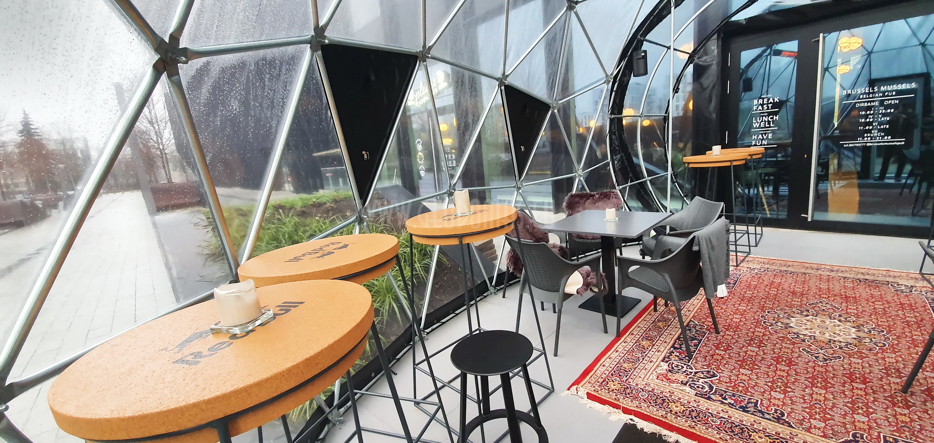 Kupolas Ø7x5m su Stella Artois prekės ženklu – tai modernus architektūrinis elementas, kuris ne tik suteikia papildomos erdvės lankytojams, bet ir papildo restorano stilių. Jis sukurtas iš tvarių medžiagų, užtikrinančių ilgaamžiškumą ir atsparumą oro sąlygoms, bei elegantiško dizaino, kuris pritraukia praeivių dėmesį.