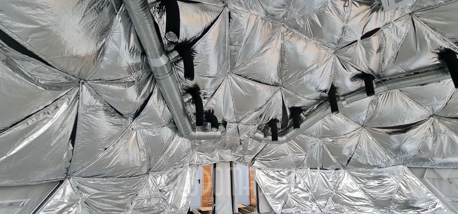 Daugiasluoksnė kupolo sienos šilumos izoliacija su dviem 100cm kameromis