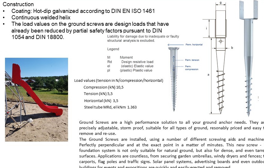 – Metalinės konstrukcijos apsaugotos nuo korozijos cinkuojant, padengiant kokybiškais milteliniais dažais. Mediniai elementai impregnuojami vakuminiu būdu. Visos saugos priemonės yra pagamintos iš plastiko – aplinkai nekenksmingų medžiagų.Platus spalvų ir aksesuarų pasirinkimas leidžia architektams ir dizaineriams maksimaliai įgyvendinti savo idėjas.