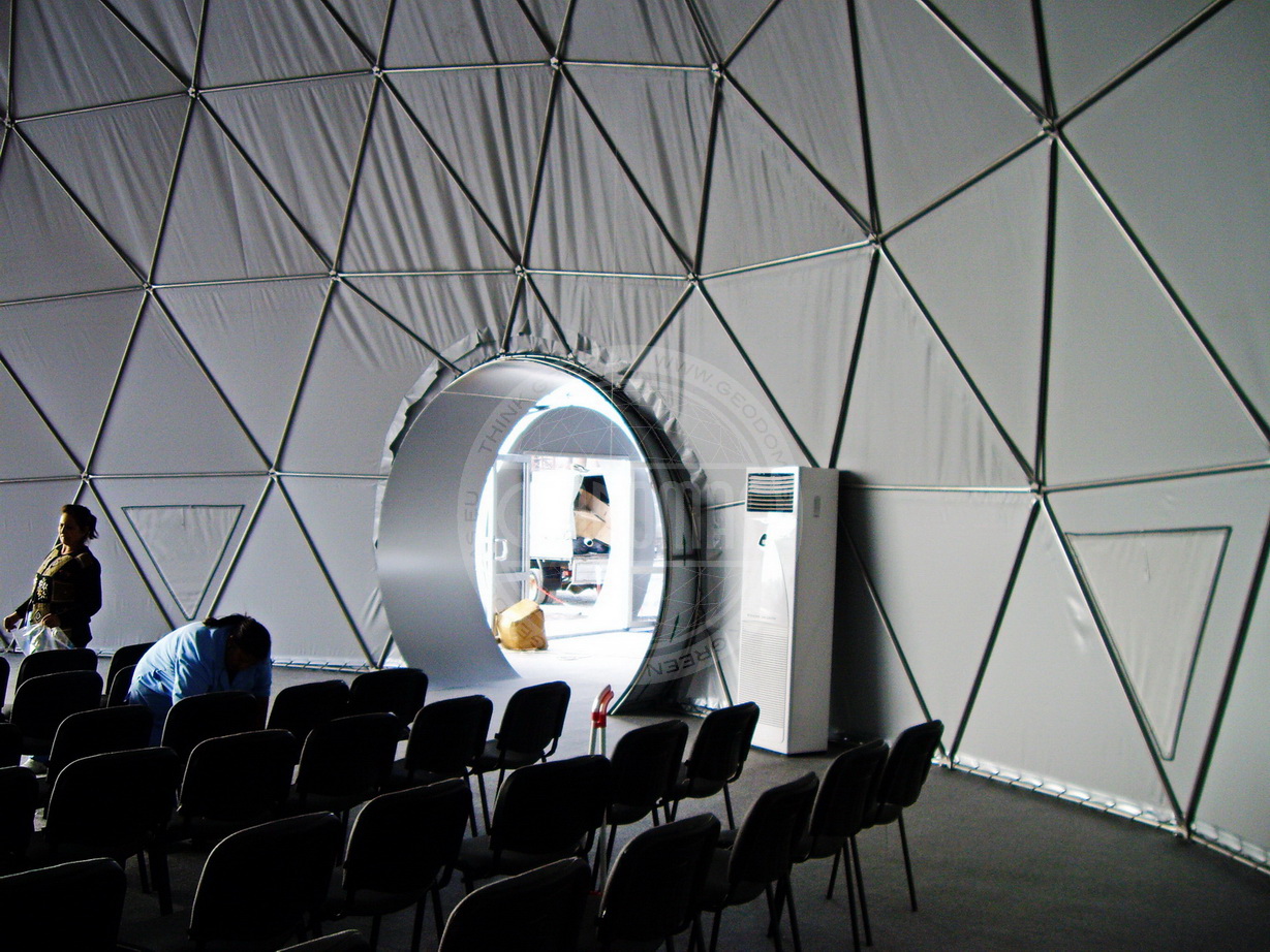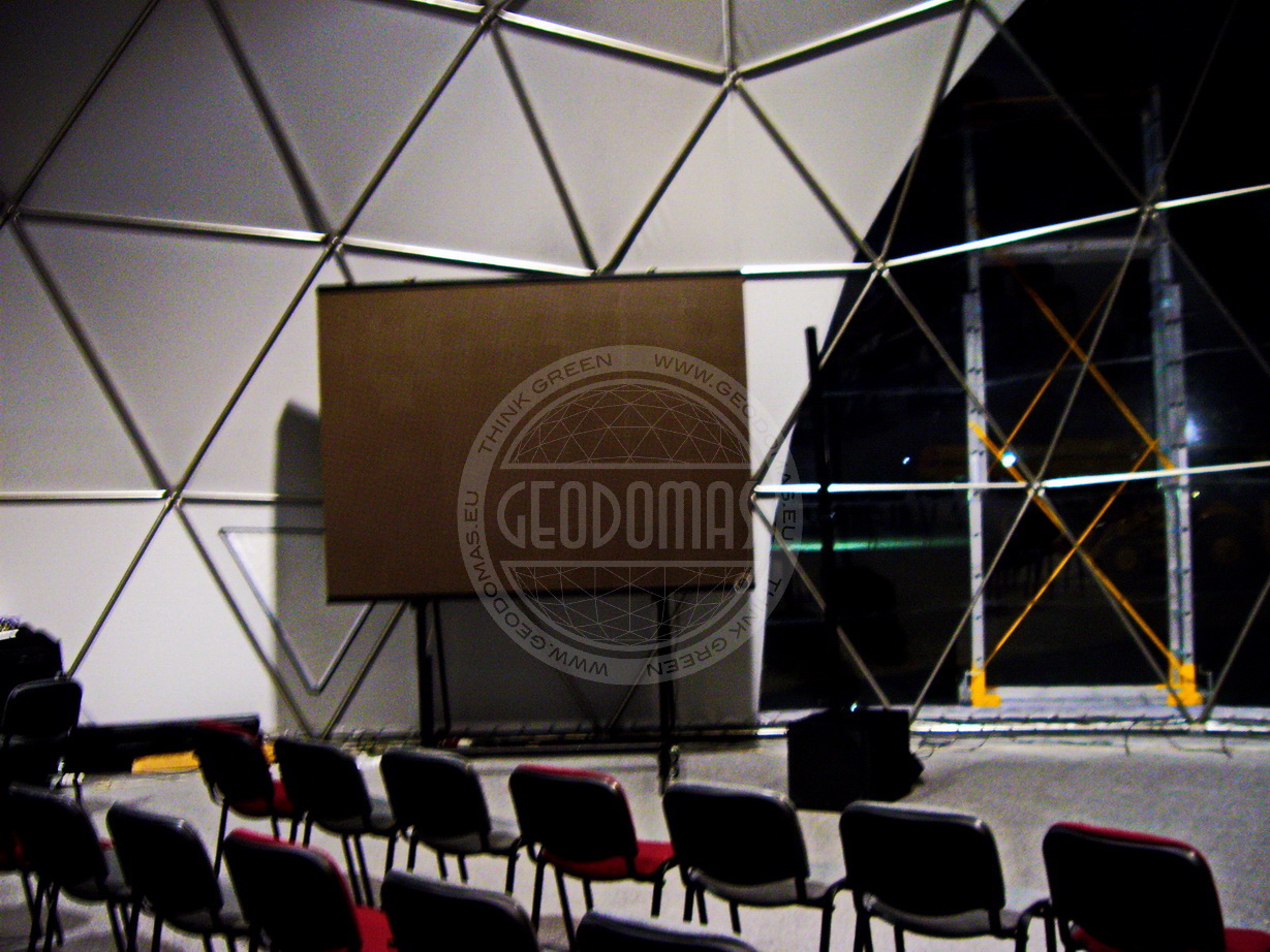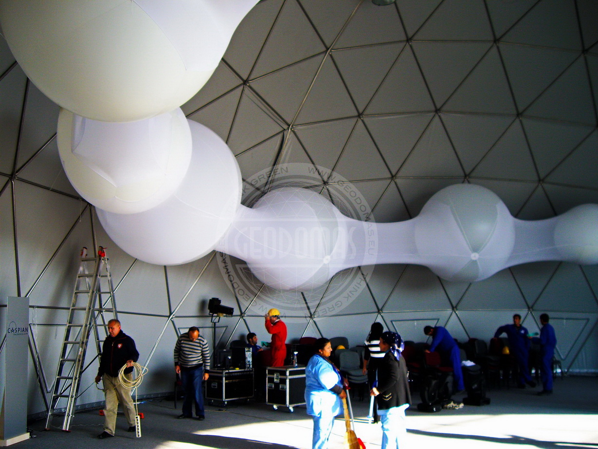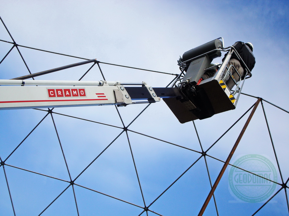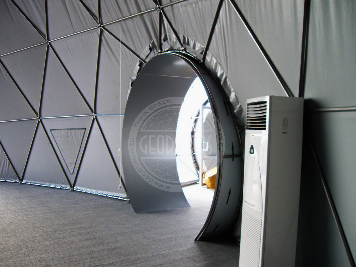 Metalinė, cinkuota sferinės formos konstrukcija | Kupolo formos paviljono rėmas pagamintas iš cinkuoto plieno, vieno varžto jungtys, apatinės jungtys kupolo tvirtinimui.