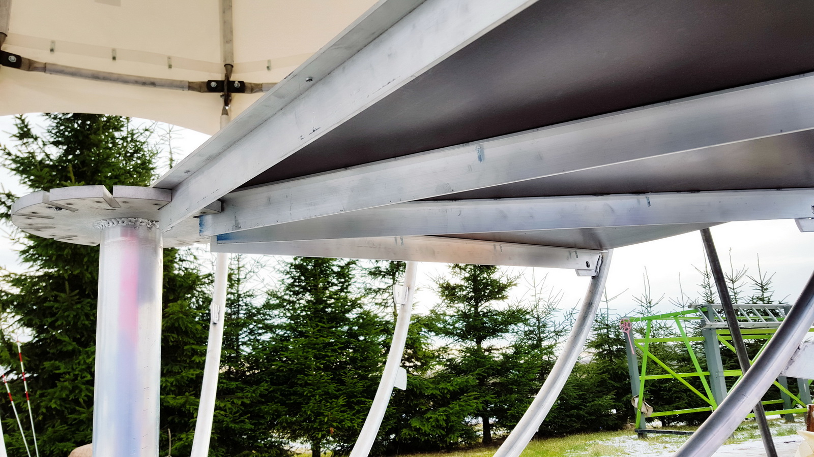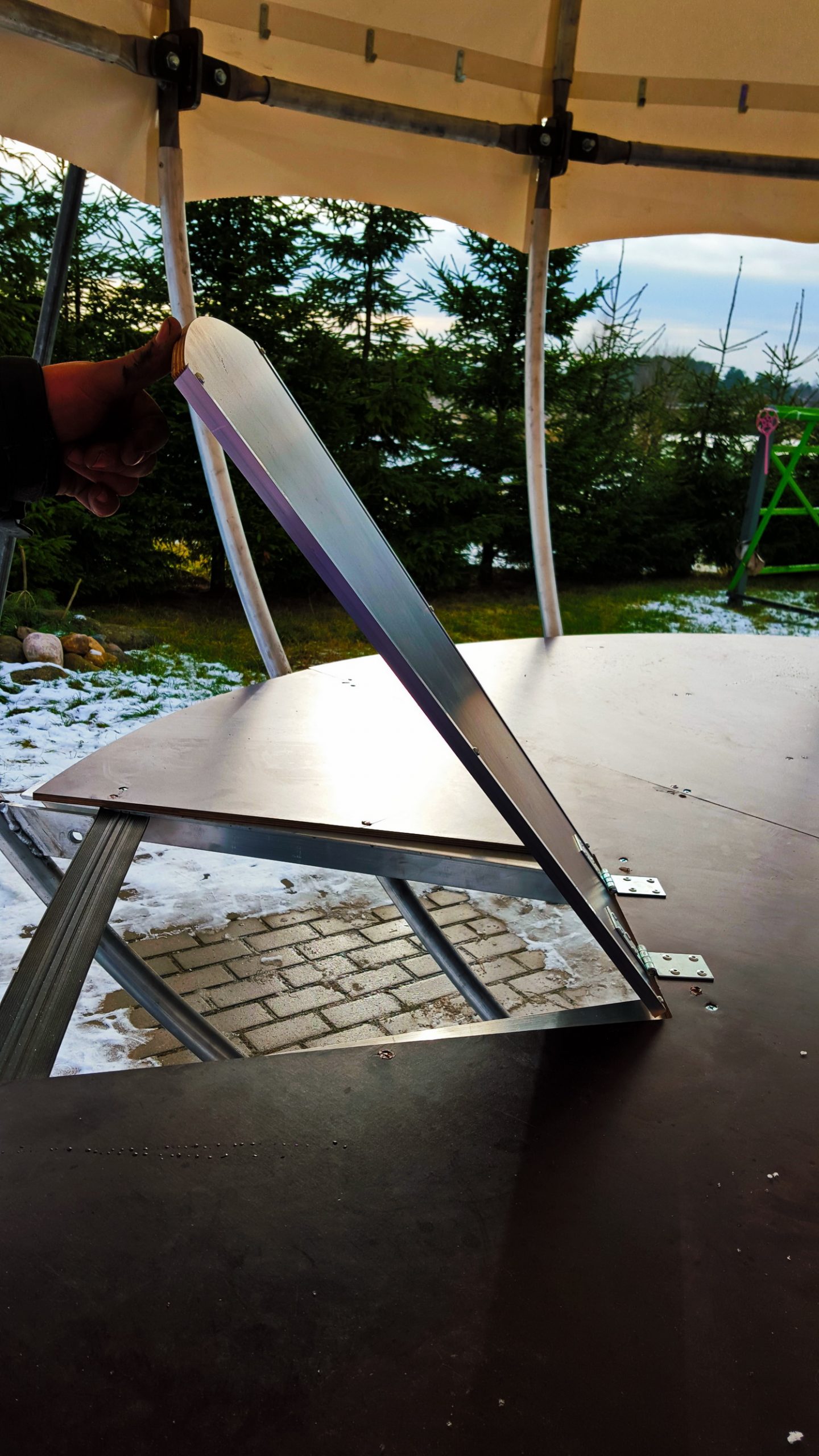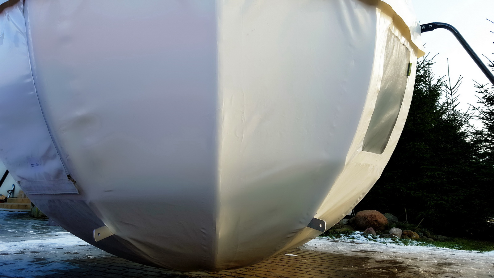 - DANGA: PVC danga 720-900gr / m2 (spalva: tamsiai žalia), 30% paviršiaus PVC skaidrus tamsintas langas 625g / m2 , atsparus UV . Rakinamos durys su užtrauktukais, tinklelis nuo uodų.