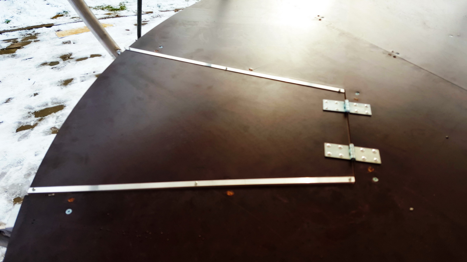 - GRINDŲ SISTEMA : Metalo ir aliuminio grindų rėmo sistema, grindų danga laminuota 10mm fanera su liuku į techninę sekciją. Po grindimis yra techninė sekcija, kurioje sumontuota įranga.