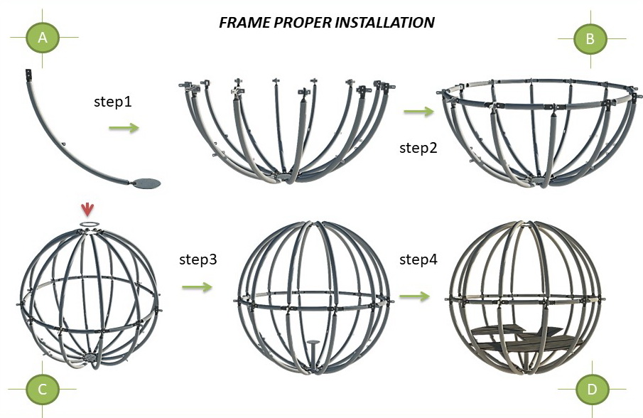 - Kupolo rėmo, dangos ir kt. dalys pažymėtos pagal projektinė dokumentacija