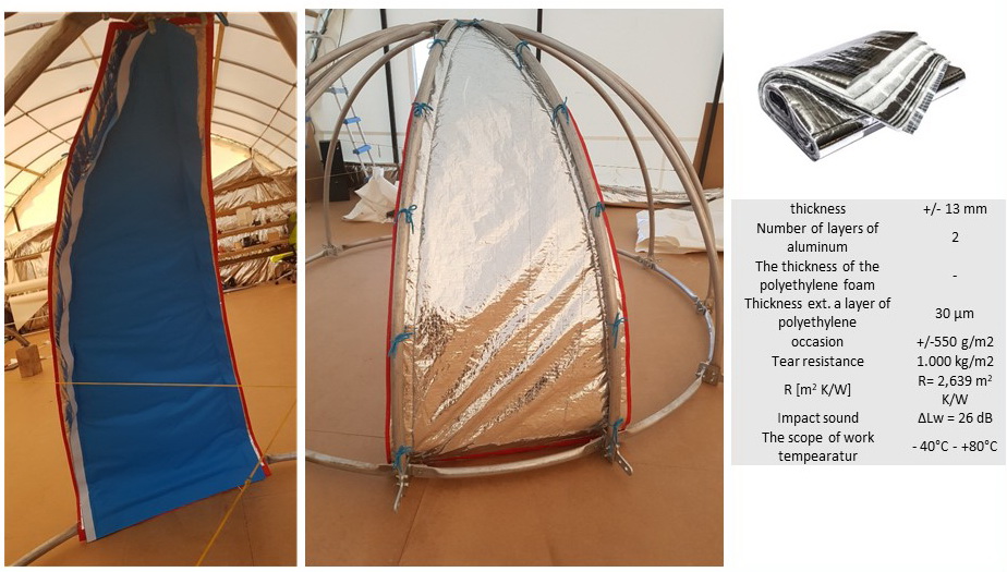 - IZOLIACINĖ MEMBRANA : Daugiasluoksnė siena. Thermoflex izoliacija 13 + THERMIC, danga kupolo izoliacijai, šilumos laidumas: λ = 0,029 W / (mK). Termoso efektas.