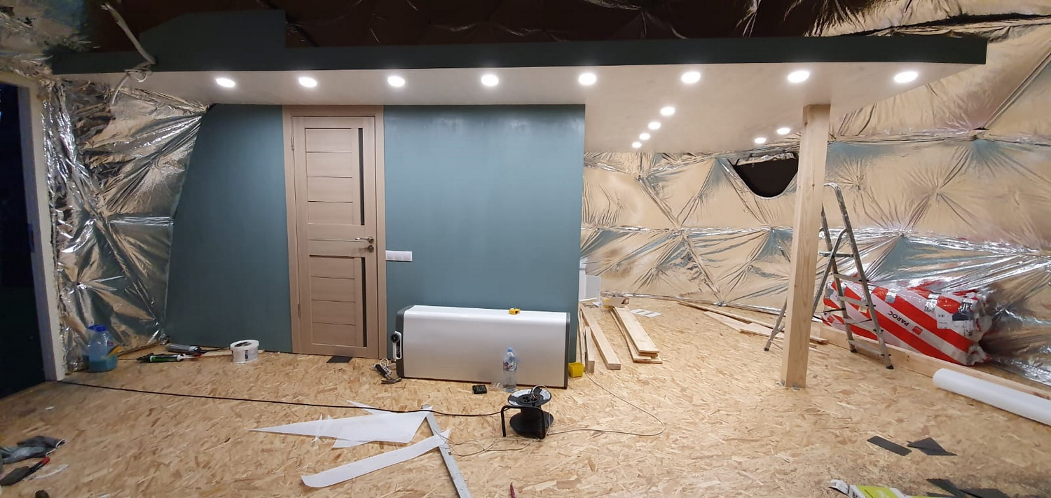 Daugiasluoksnė kupolo sienos šilumos izoliacija su dviem 100cm kameromis