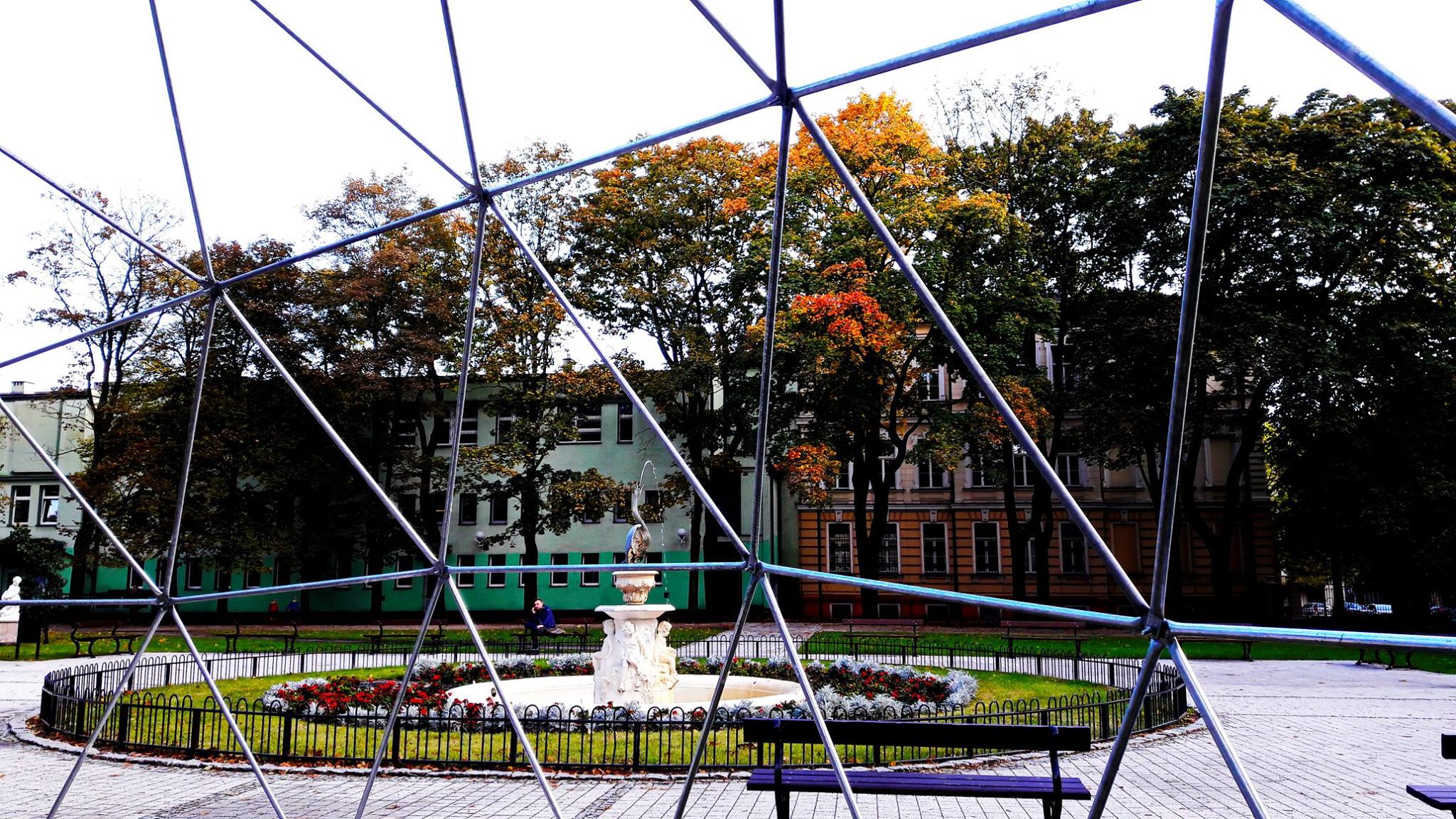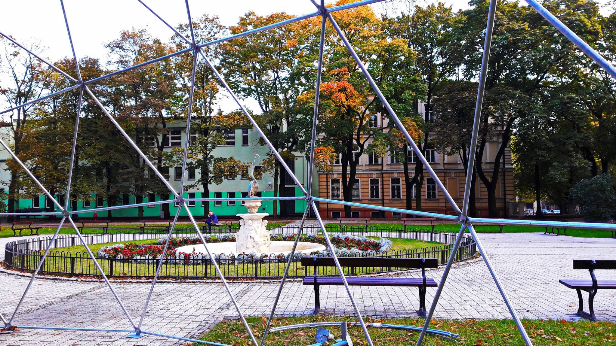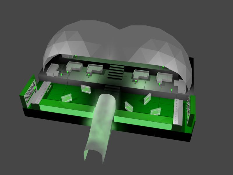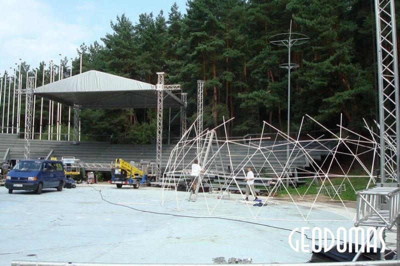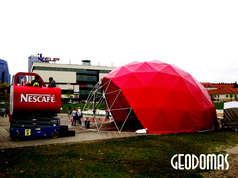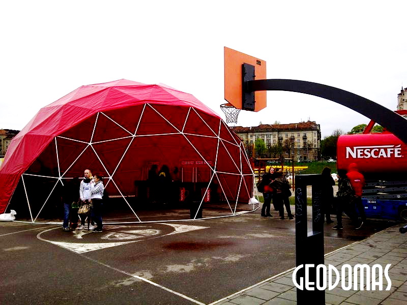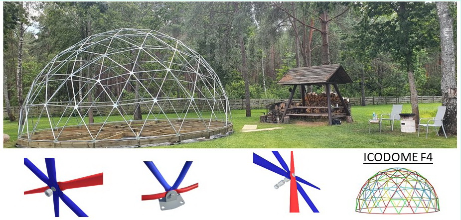 Metalinė, cinkuota sferinės formos konstrukcija | Kupolo formos paviljono rėmas pagamintas iš cinkuoto plieno, vieno varžto jungtys, apatinės jungtys kupolo tvirtinimui.