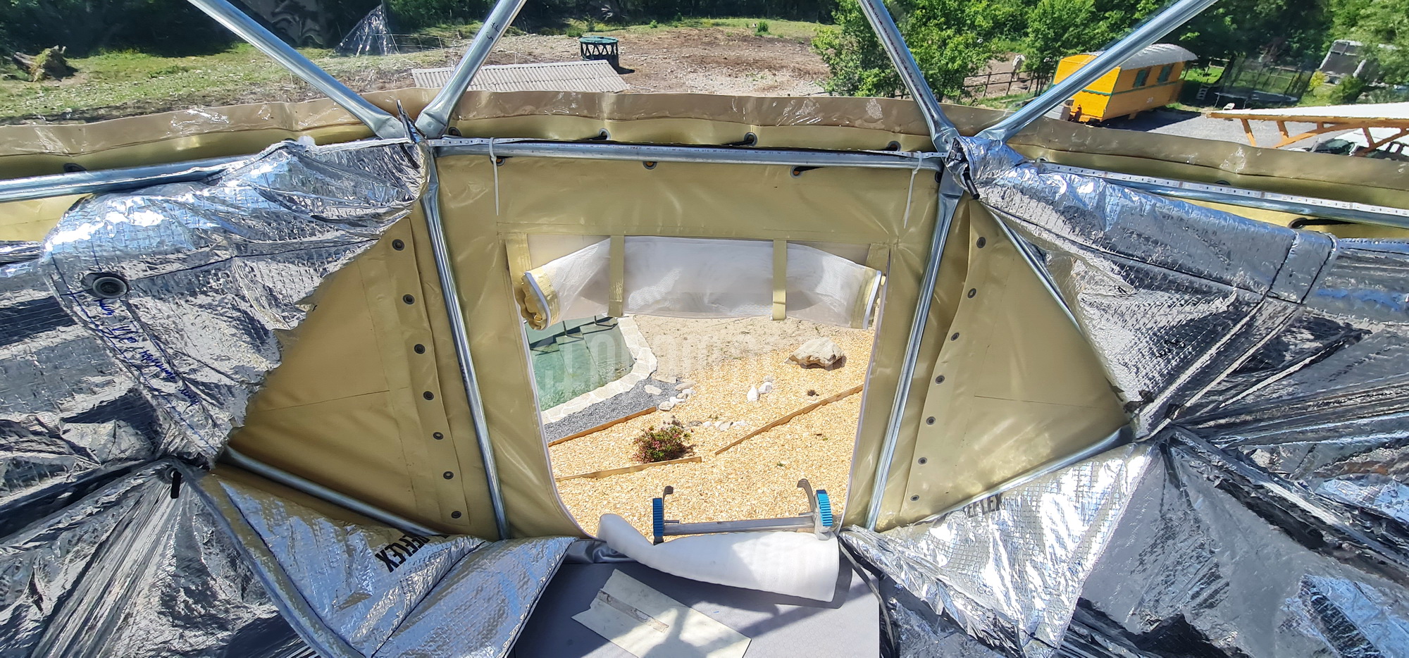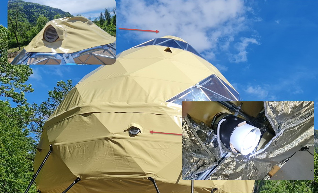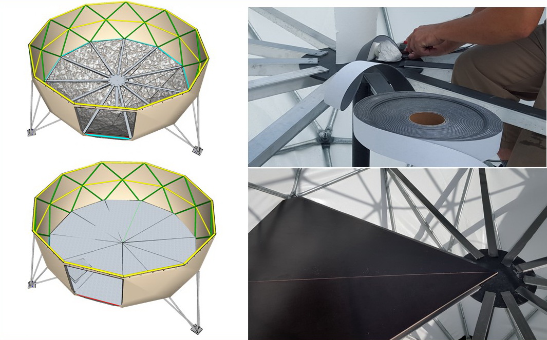 Daugiasluoksnė kupolo sienos šilumos izoliacija su dviem 100cm kameromis